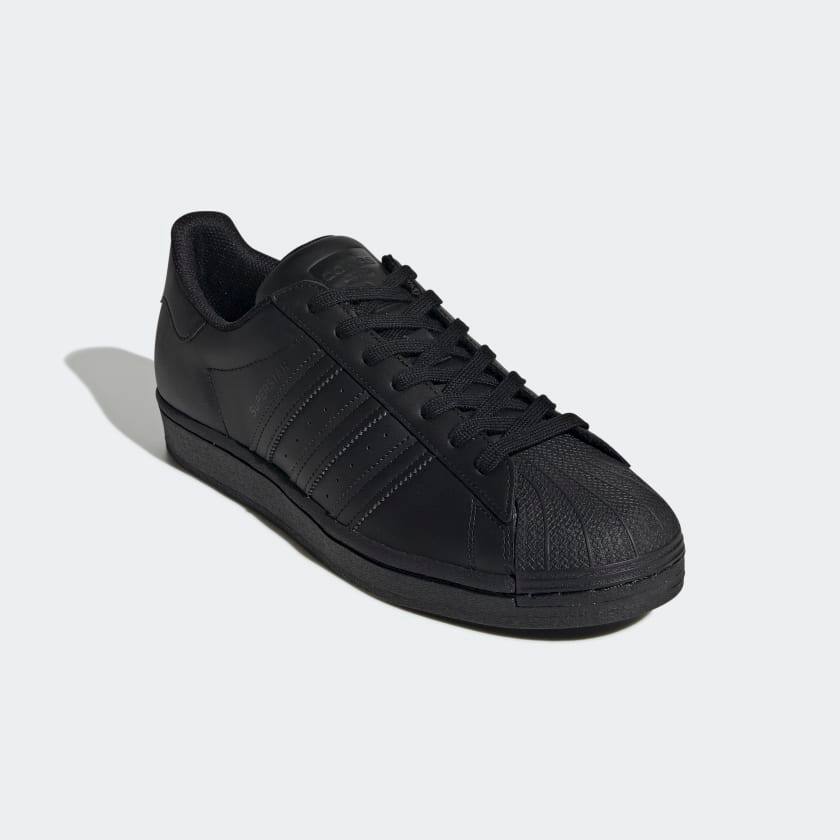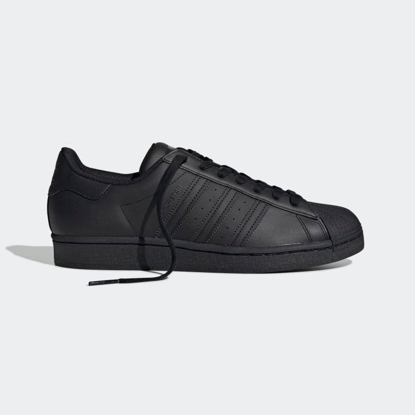 Superstar “Core Black”, minimalist bir tasarıma sahip olup, tamamen siyah üst yüzeyi ile dikkat çekiyor. Üst kısım, yüksek kaliteli deri malzemeden üretilmiş olup, hem dayanıklılığı hem de şıklığı ile ön plana çıkıyor. Ayakkabının önünde bulunan ikonik kaplama burun ise, sadece estetik değil, aynı zamanda yapısal bir destek sağlıyor.