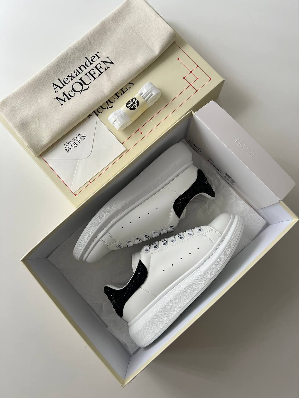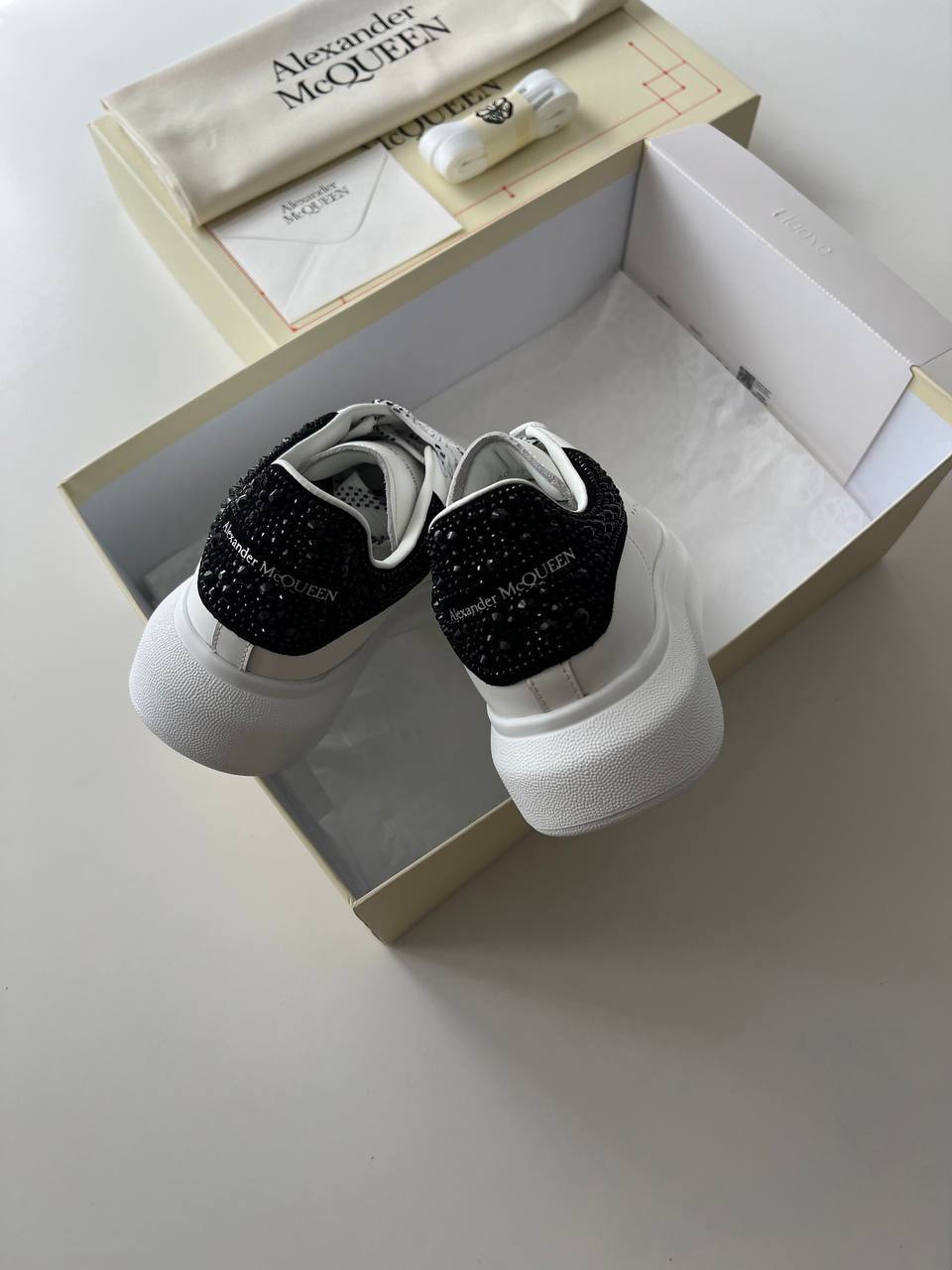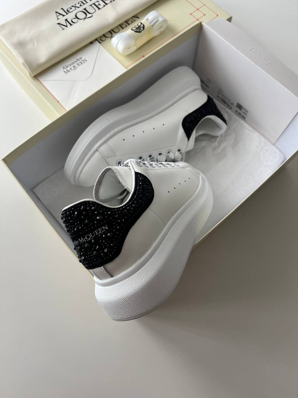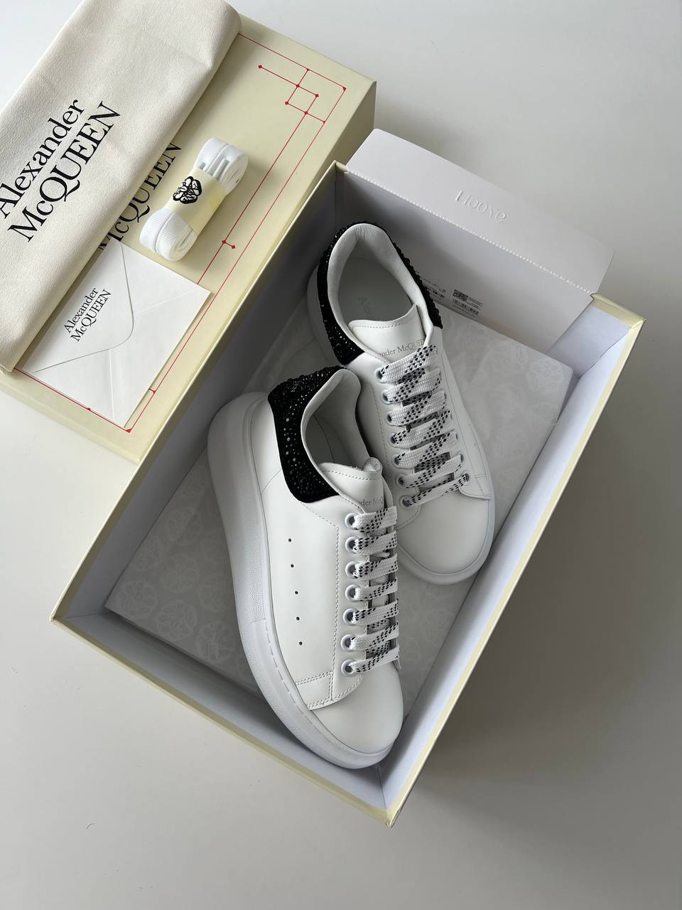 Alexander McQueen Taşlı Beyaz Siyah Ayakkabı, lüks ulaşılabilirliğini, zarafetini ve rahatlığını bir araya getiriyor. Modaya yön veren bu tasarım, her adımda kendinizi özel hissetmenizi sağlarken, aynı zamanda günlük stilinize modern bir dokunuş getiriyor. Bu muhteşem ayakkabı, dolabınızda yer almayı kesinlikle hak ediyor!