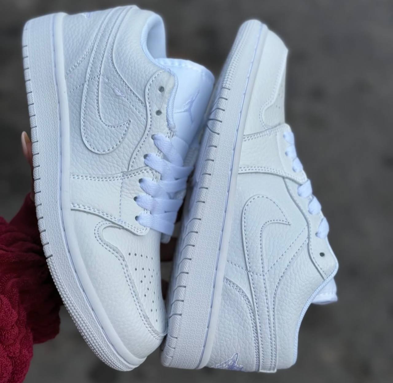 Air Jordan 1 Low “Triple White” modelinin üst kısmı yüksek kaliteli deri malzemelerden üretilmiştir. Bu, ayakkabının dayanıklılığını artırırken, aynı zamanda konforlu bir giyiş deneyimi sunar. Tamamı beyaz olan dış yüzeyi, her stile uyum sağlar ve kirlendiğinde kolayca temizlenebilir. Ayakkabının yanı sıra, ikonik Swoosh logosu ve Air Jordan kanat logosu, minimalist tasarıma zarif bir dokunuş katıyor. Ayakkabının klasik silueti, geçmişten bugüne geçerliliğini koruyan bir stil sunuyor.